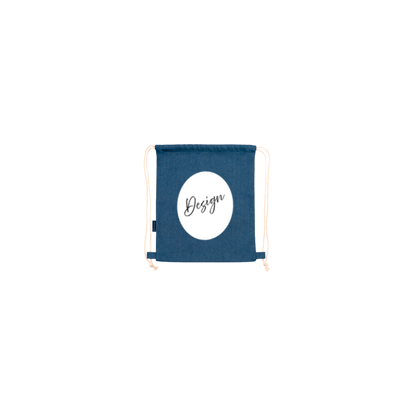 Mochila realizada en tejido vaquero reciclado con cuerdas de algodón de 8 mm. Personalízala con tu logo o imagen sin límite de colores.