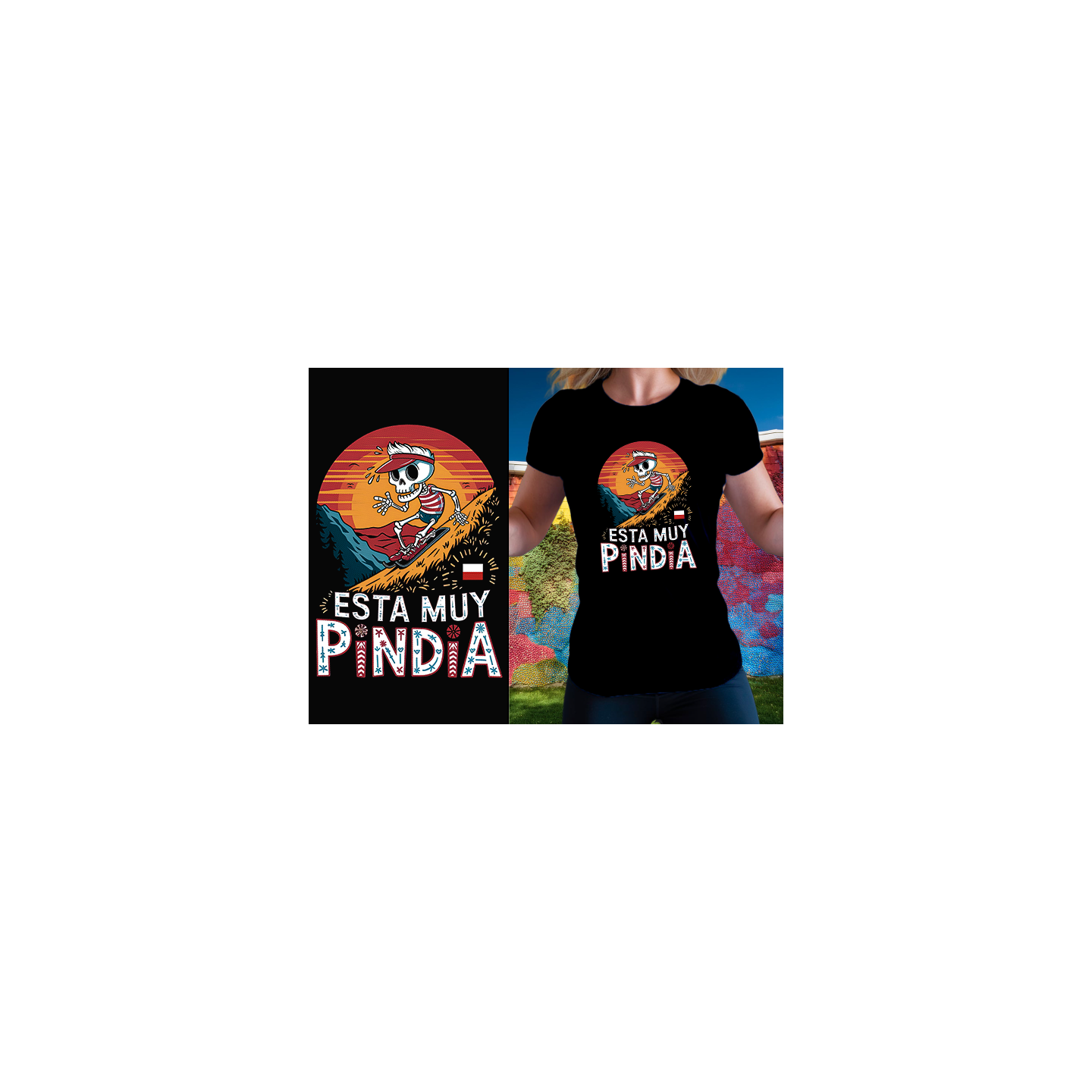 Diseño original y divertido de un esqueleto bajando una cuesta muy inclinada, o como se dice en la Tierruca "Muy Pindia".