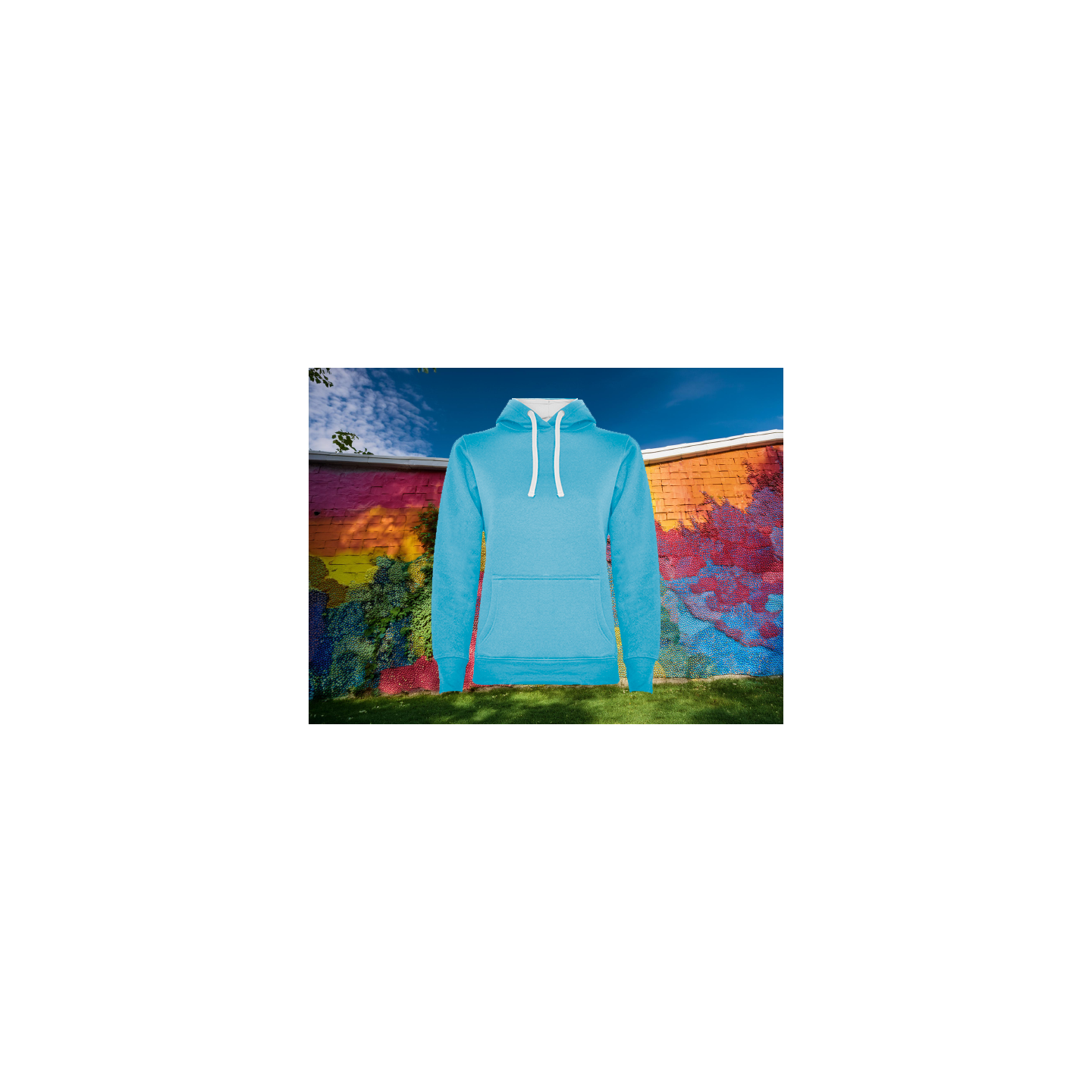 Sudadera con capucha de doble tejido, con cordón ajustable, en acabados solido y bicolor. Cubrecosturas en el cuello y bolsillo canguro. Punto canalé con elastano 1x1 en puños y cintura.  Estampado en el pecho y/o en el frente o la espalda.