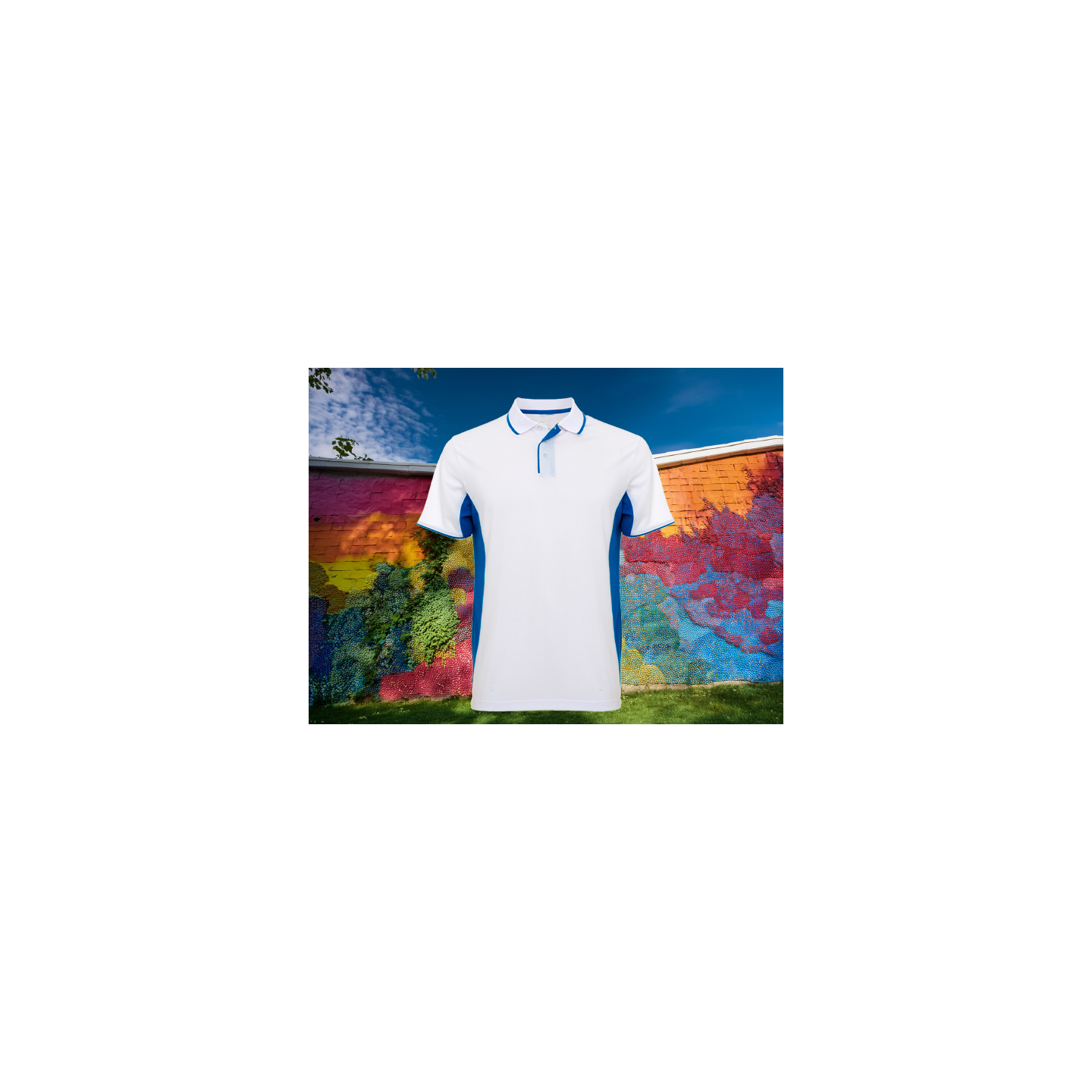 Polo técnico en manga corta, especial para deporte. Combinado a dos colores. Cuello con abotonadura, cubrecosturas y tapeta en contraste de color. Tejido transpirable fácil lavado y secado. Estampado en el pecho y/o en el frente o la espalda.