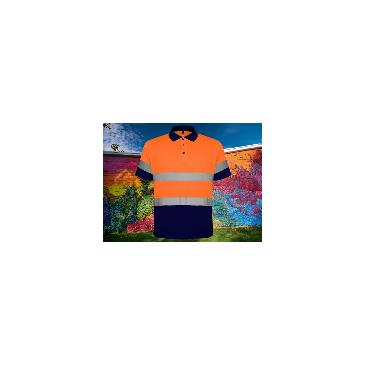 Polo técnico manga corta de alta visibilidad. · Cuello en punto canalé 1x1. · Tapeta con 3 botones. · Una cinta reflectante en mangas y dos en pecho y espalda. · Tejido anti enganches y fácil secado.