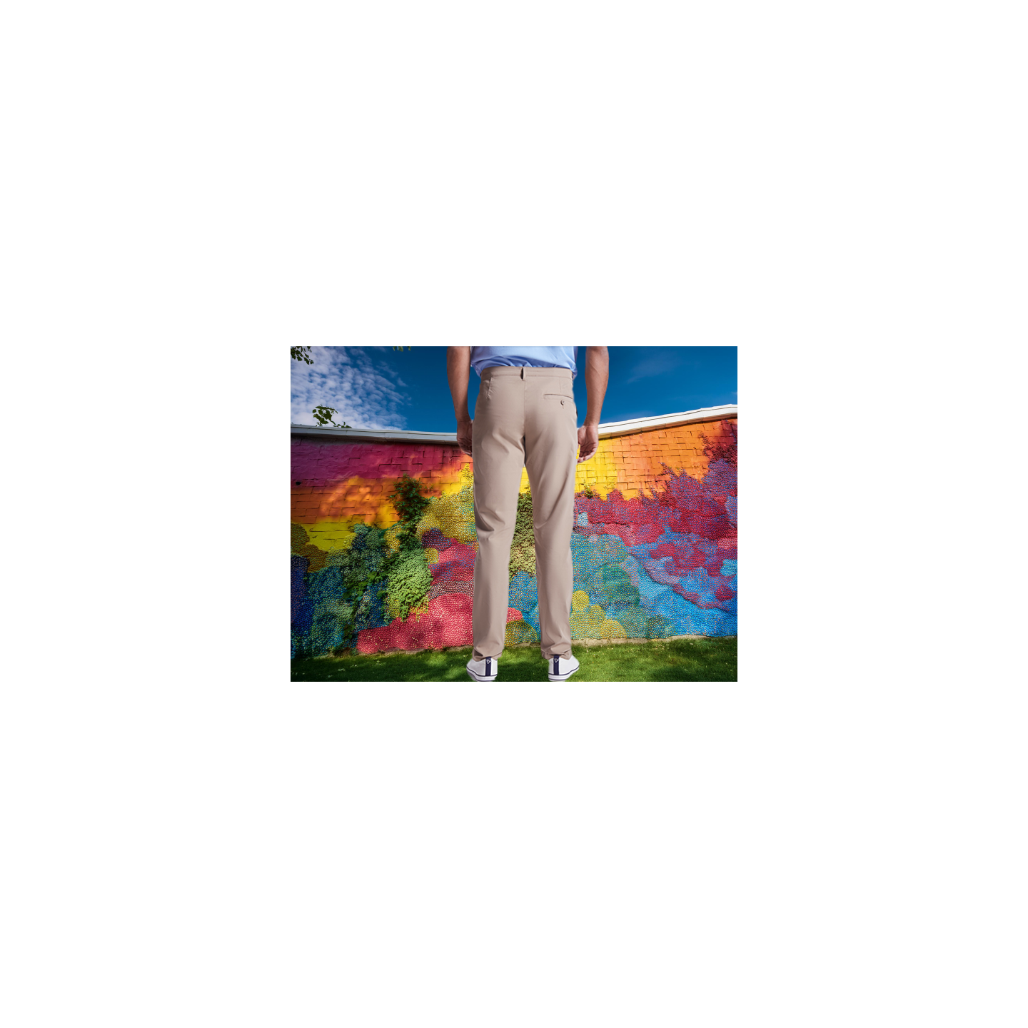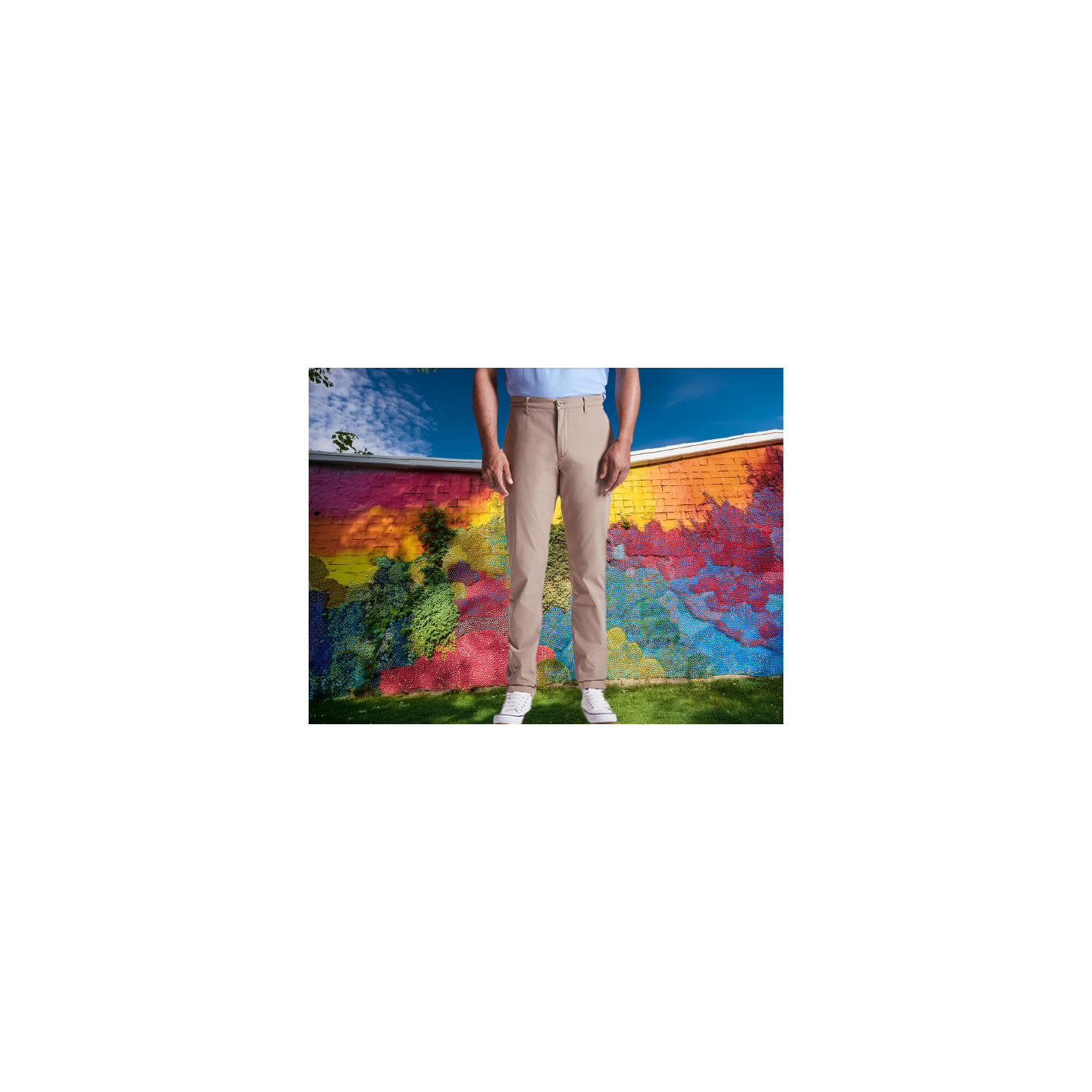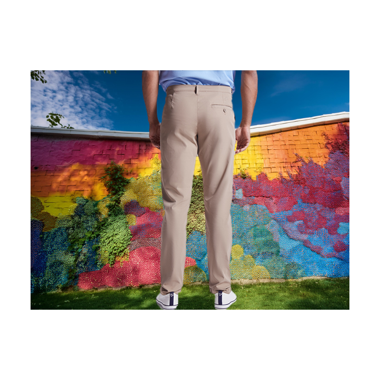 Pantalón largo de hombre. · Trabillas para cinturón. · Cierre con cremallera y botón. · Trabillas para cinturón. · Bolsillos laterales. · Bolsillo frontal derecho portamonedas. · Bolsillo trasero derecho de ojal con botón. COMPOSICIÓN