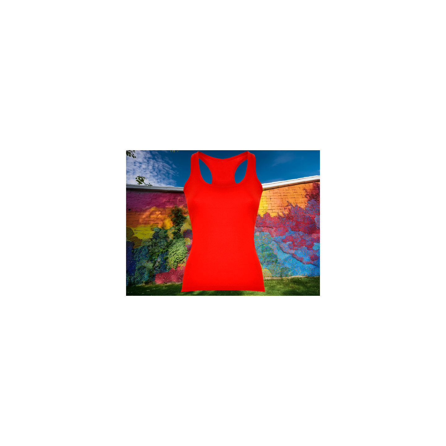 Camiseta deportiva de algodón personalizable, entallada, con sisas y escote ribeteado, ancho y enrollado. Espalda estilo nadadora y costuras laterales.